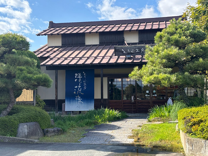 月山の湧き水、地元産の大豆にこだわり、昔ながらの製法でつくる豆腐屋さんのファクトリーショップ『とうふ工房 清流庵』。カフェスペースがあり、豆腐を使ったいろいろなスイーツを店内で味わうことができます。